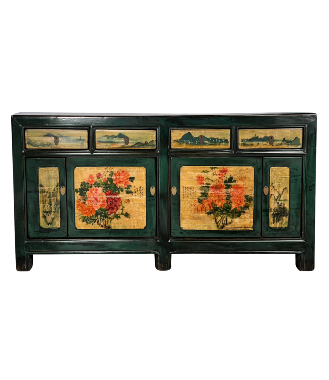 Antikes Chinesisches Sideboard Blaugrün Handbemalt Pfingstrosen B176xT45xH85cm Lesen Sie mehr.