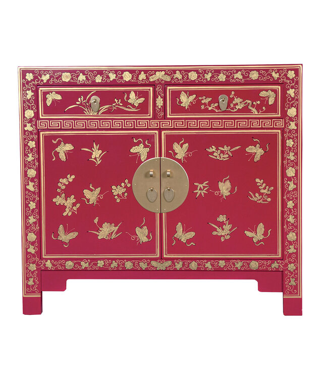 Chinesischer Schrank Fuchsia Royale Schmetterlinge Handbemalt - Orientique Kollektion B90xT40xH80cm
