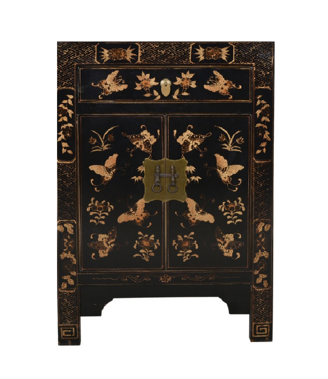 Chinesischer Schrank Schwarz Schmetterlinge Handbemalt B58xT37xH85cm
