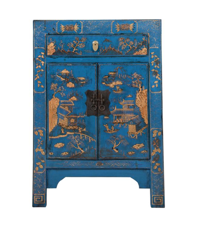 Chinesisches Schrank Blau Handgemalte Landschaft B58xT37xH85cm