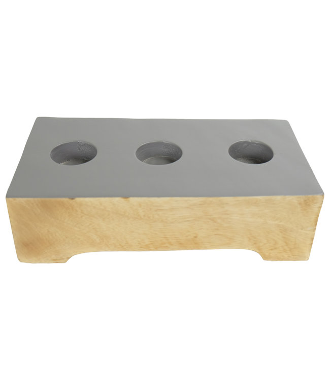Japandi Kerzenhalter Mangoholz Handgefertigt Grau B26xT13xH7cm