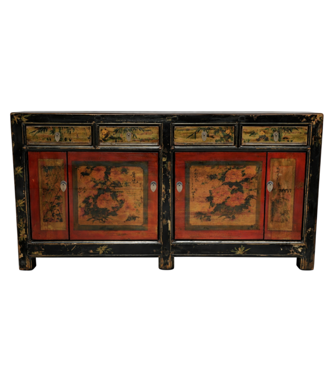 Antique Chinese Sideboard Red Handpainted Flowers W164xD40xH81cm