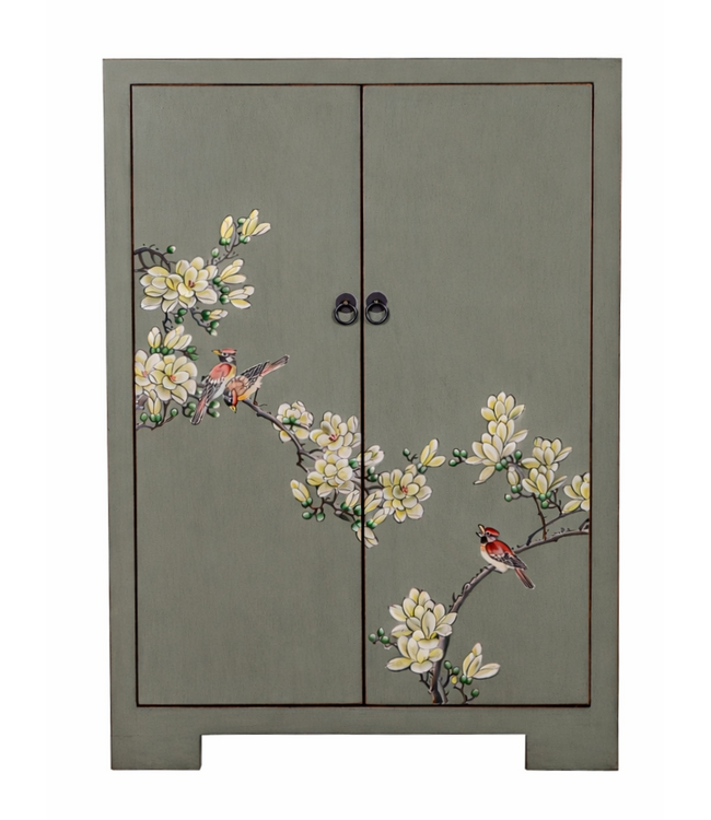 Chinese Cabinet Olive Grey Handpainted Blossoms W80xD35xH99cm