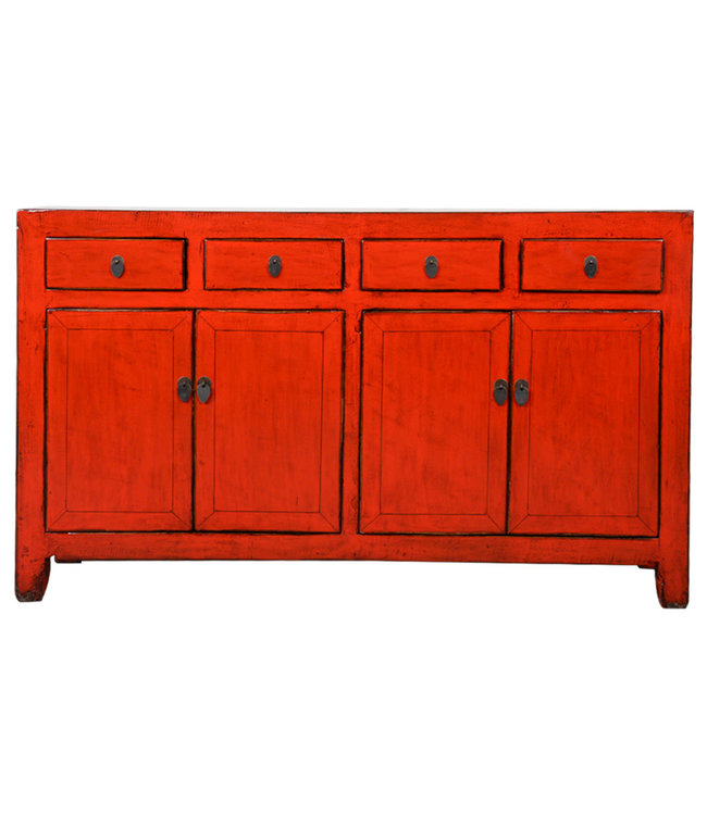 Buffet Chinois Ancien Rouge Haute Brillance L155xP40xH95cm