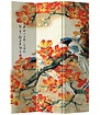 Paravent Chinois L120xH180cm 3 Panneaux Fleurs d'Oranger Oiseaux Bleus