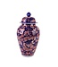 Vase Chinois Porcelaine Bleu Rouge Pivoines Peint à la Main D23xH35cm