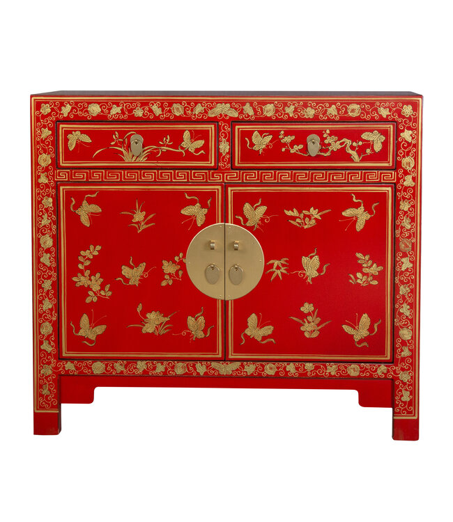 Armadio Cinese Lucky Rosso Farfalle Dipinto a Mano - Orientique Collezione L90xP40xA80cm