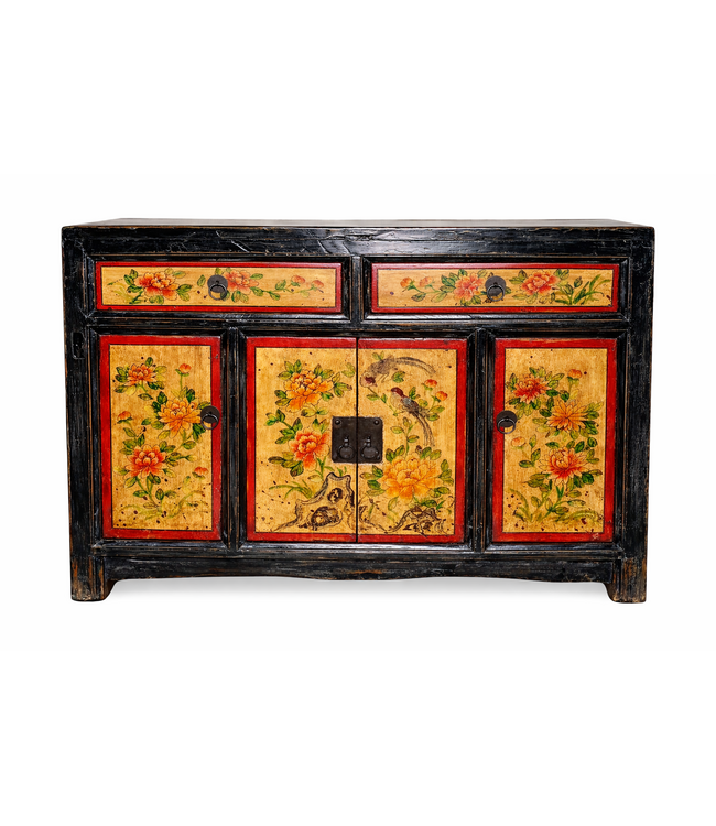 Credenza Cinese Antica Dipinta a Mano con Peonie L110xP42xA85cm