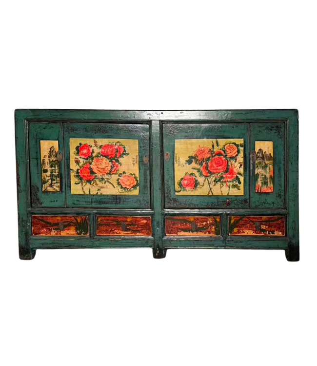 Credenza Cinese Antica Peonie Dipinta a Mano L171xP40xA87cm