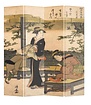 Divisorio in Tela Giapponese L160xA180cm 4 Pannelli Kiyonaga Rinfrescando in Riva al Fiume