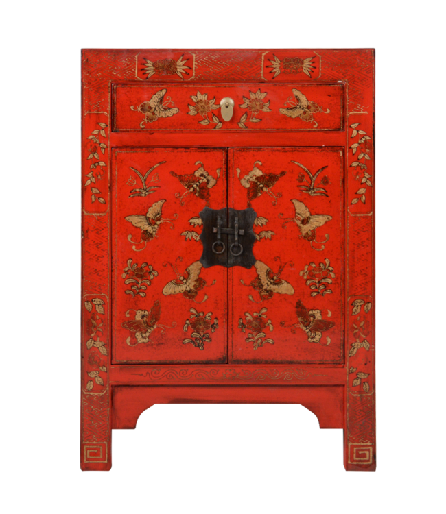 Chinese Kast Rood Handgeschilderd Vlinders B58xD37xH85cm Lees meer.