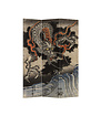 Praktisch canvas kamerscherm 3 panelen geprint een afbeelding van een Japanse Draken. Het dubbelzijdig kamerscherm is multi-functioneel en kan bijvoorbeeld ruimtes in een kamer afscheiden, een raam bedekken of als decoratief element dienen.