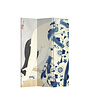 Praktisch canvas kamerscherm 3 panelen geprint een afbeelding van een Japanse vrouw. Het dubbelzijdig kamerscherm is multi-functioneel en kan bijvoorbeeld ruimtes in een kamer afscheiden, een raam bedekken of als decoratief element dienen.