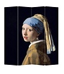 Praktisch canvas kamerscherm 4 panelen geprint met een afbeelding van Meisje met de Parel. Het dubbelzijdig kamerscherm is multi-functioneel en kan bijvoorbeeld ruimtes in een kamer afscheiden, een raam bedekken of als decoratief element dienen.